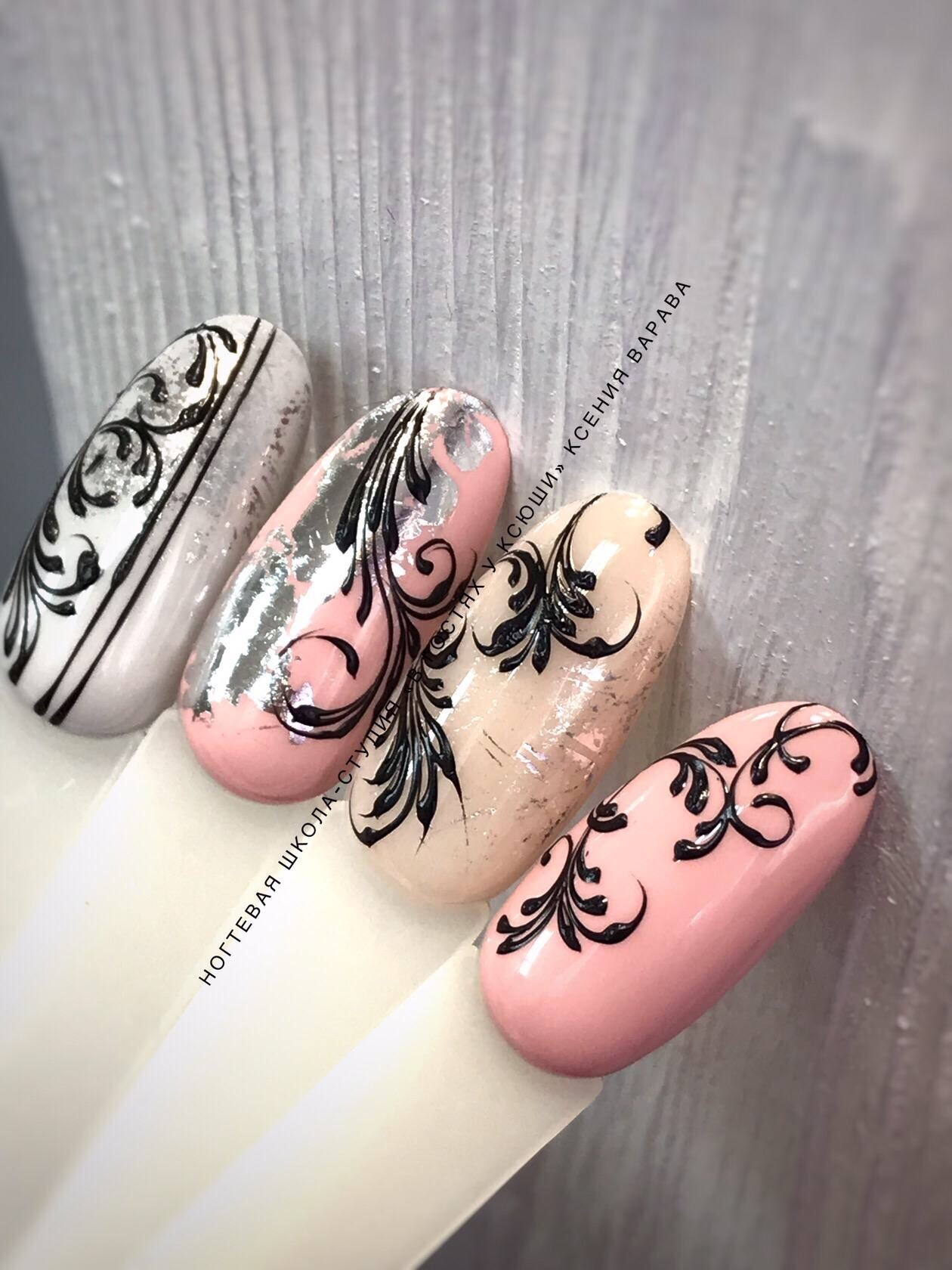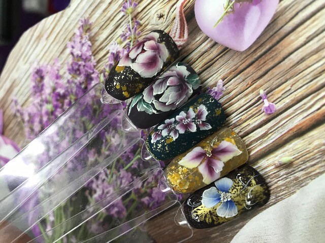 • На курсе выполняем градиенты (горизонтальный, вертикальный, диагональный), сетки, кружева, подручные материалы, трафареты, графика.
